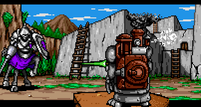 Teníamos el tema, pero faltaba el contexto. En mi infancia, adoraba un juego de RPG llamado Shining Force para la consola Sega Genesis. Aunque el género era fantasía, con aliados como elfos y enanos, y enemigos como dragones y trasgos, había un elemento peculiar: un pueblo donde los enanos, avanzados en sus inventos, habían construido robots autómatas (golems) que les ayudaban a defenderse o a trabajar.