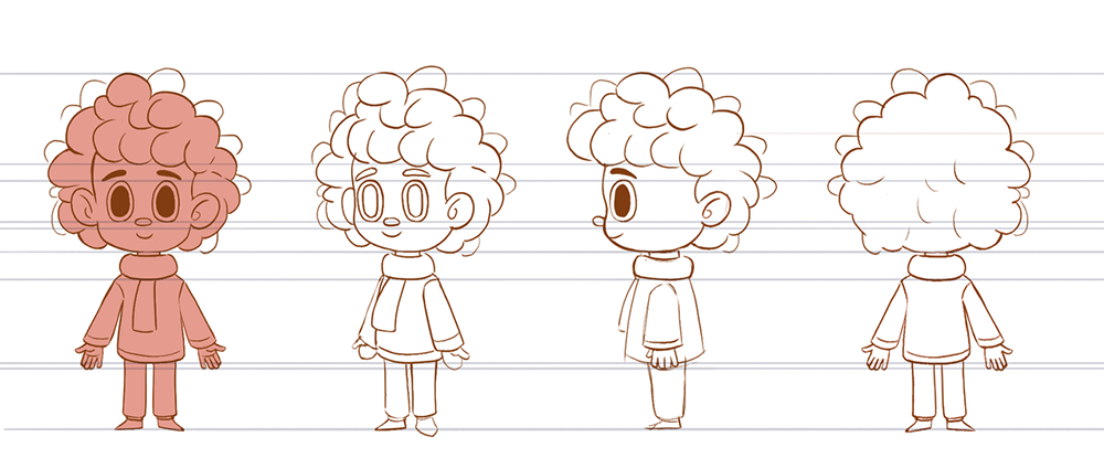 Respecto al desarrollo de personajes, tomamos como base un trabajo previo proporcionado por el cliente y de ahi desarrollamos la familia de personajes que constaban de nuestro progtagonista; Pablo tambien desarrollamos a Maria, José, el niño Jesus, los tres reyes magos, Borrego, Burrito y Santa Claus