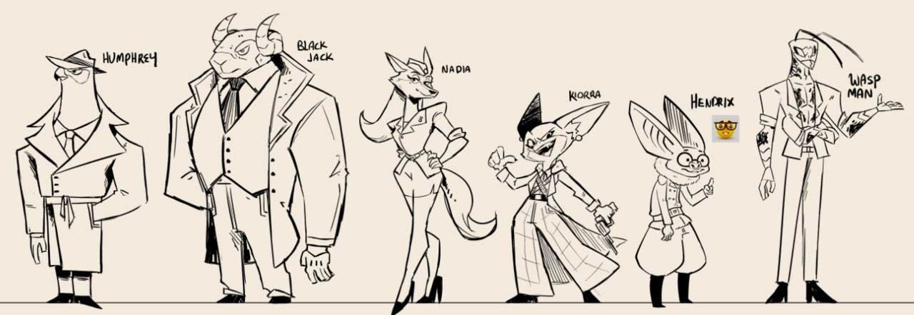 La historia se sitúa en una ciudad norteamericana desarrollada en la época de la postguerra. Los personajes son animales antropomórficos, la mayoría ya estaban designados, pero nosotros desarrollamos un estilo que aplicamos para lograr congruencia en el diseño.